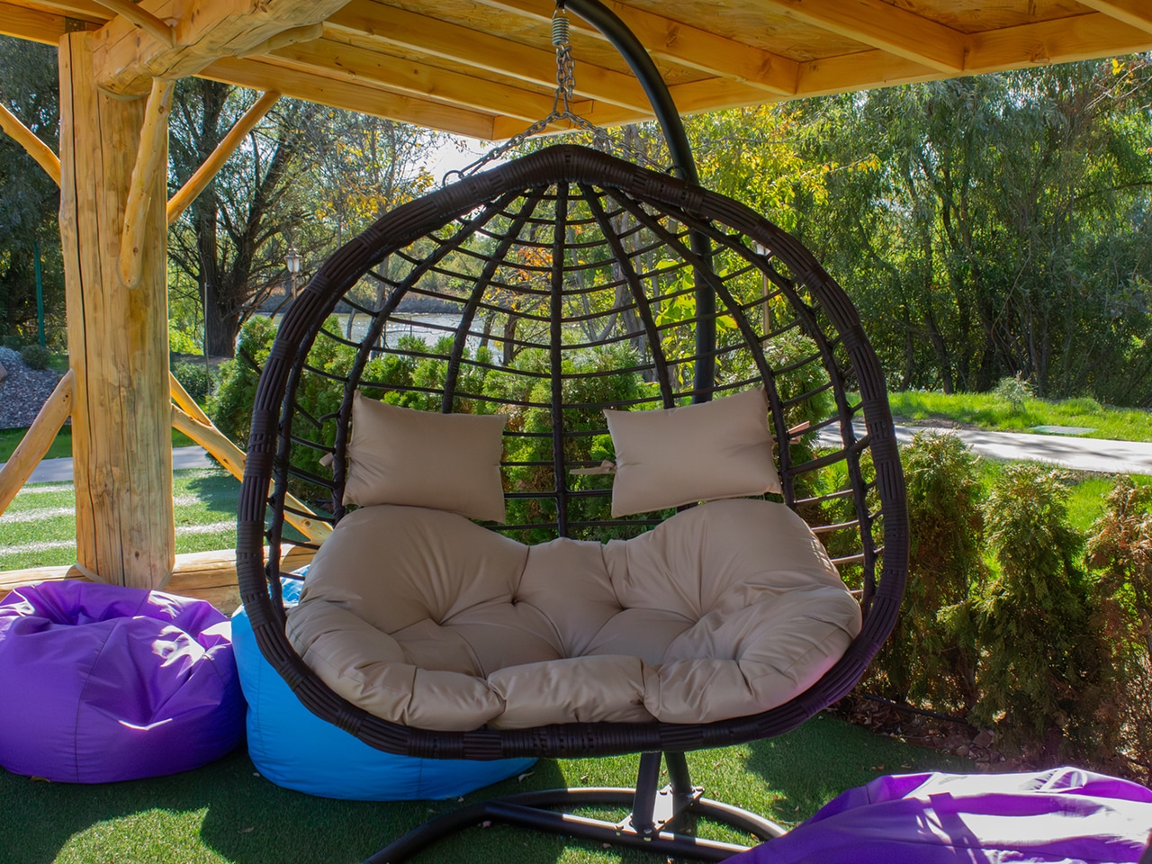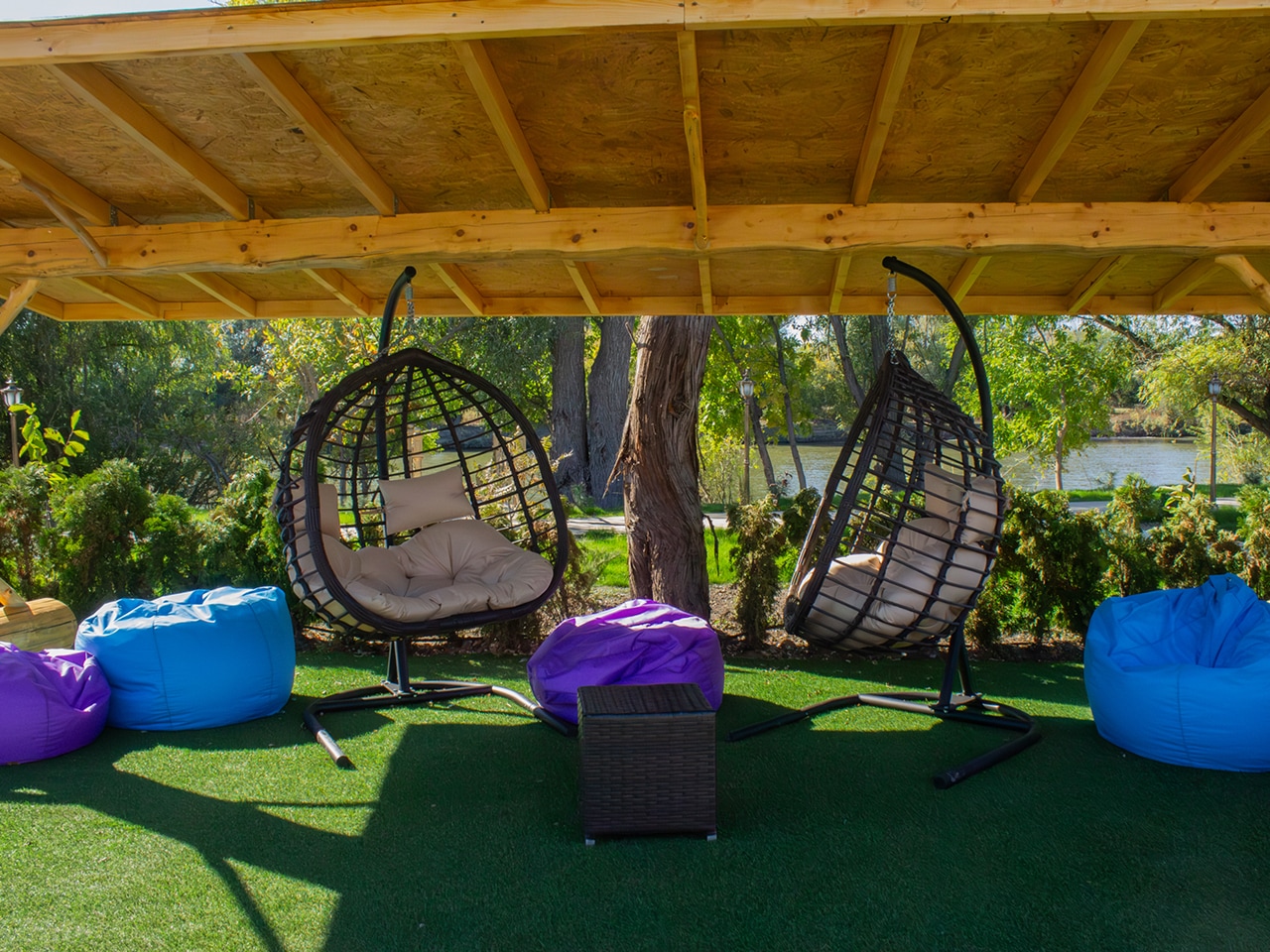 Этот по-настоящему шикарный комплекс дарит ощущение уединённого рая: уютная огороженная территория, бассейн на улице 12мх4м с кристально чистой водой, прямой выход к ароматной русской бане и романтичная беседка на воде, где так хочется задержаться под легкий плеск воды. А прямо у ваших апартаментов — всё, что нужно для беззаботного отдыха: мягкие качели под деревьями, уютные мангалы с обеденными зонами и удобные шезлонги, на которых так приятно растаять под ласковым южным солнцем. Здесь каждый момент превращается в маленькое счастье!